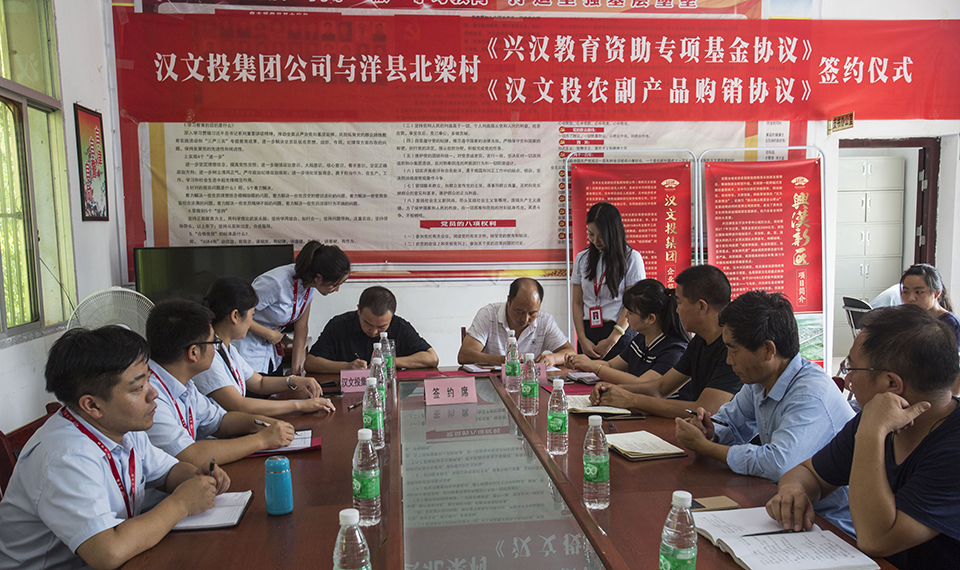 MORE汉文投讯 为结对帮扶村脱贫攻坚再添新动力。8月16日,集团公司分别与洋县槐树关镇北梁村、勉县定军山镇定军山社区(原元山村)签订了《兴汉教育资助专项资金协议》《汉文投农副产品购销协议》及《苗木花卉购销协议》,资金总额达70万元。集团公司品牌传播部总监赵飞代表公司及扶贫小组为帮扶村6名今年刚考上大学的学生发放了助学金7.5万元。此次活动是汉文投集团按照全国工商联、国务院扶贫开发领导小组办...