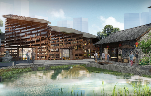 以安康的古建筑风格为主,让建筑与自然相融合,体现安康“茶”文化,主要功能以商业,餐饮和汉服产业馆为主。